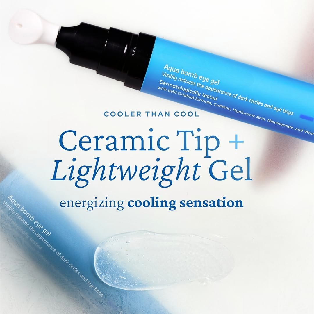 Soothe and revive tired eyes with the Aqua Bomb Cooling Eye Gel, a lightweight, fast-absorbing Korean eye treatment powered by caffeine, hyaluronic acid, and vitamin C. This gel-based formula instantly cools and refreshes, visibly reducing puffiness and dark circles while hydrating and firming the delicate under-eye area. Perfect for morning or night use, the gel texture glides on smoothly without greasiness—leaving skin plump, smooth, and radiant. Antioxidant-rich ingredients like niacinamide and adenosine help restore elasticity and tone for a more youthful, well-rested look.