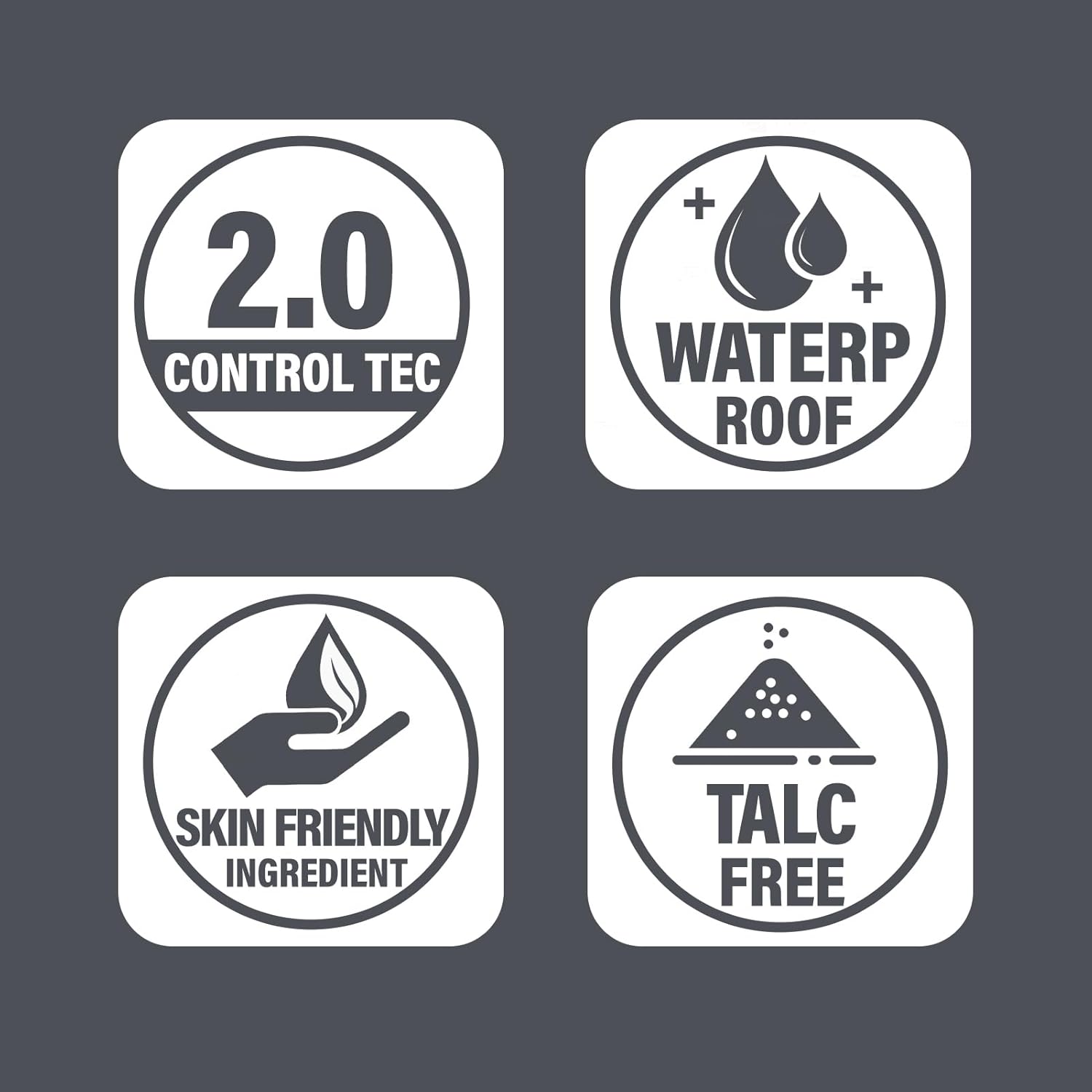 Formula: Talc-free, waterproof, oil-controlling